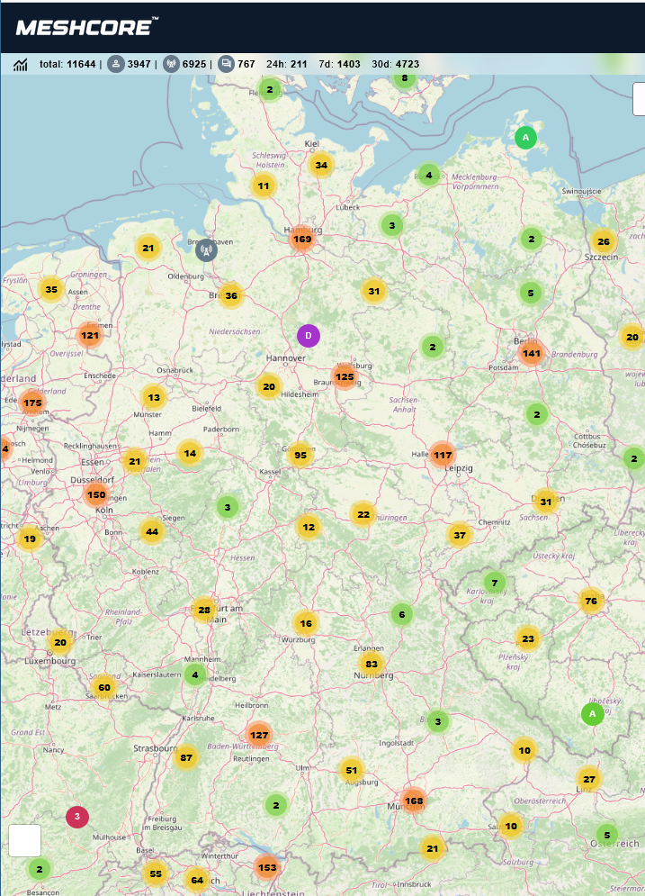 Etwas fortgeschrittenere Nutzung...Meshcore und Meshtastic - Meshtastic ist ein anderer, aktuell sogar noch etwas verbreiteter Vernetzungsstandard mit dem gleich Typen an "Lora"-Funkgeräten - funktionieren naheliegenderweise nur dann wirklich gut, wenn ein Netz von Repeatern eine weiträumige Nutzung selbst bei schlechten Standorten der Nutzer*innen ermöglicht.